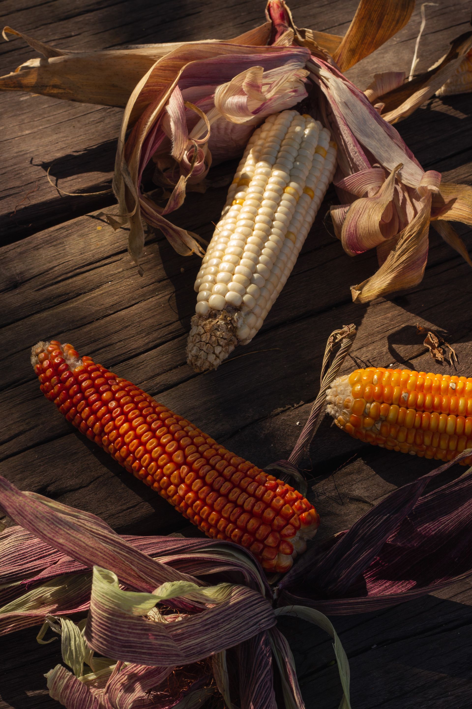 Para nuestra sorpresa, las mazorcas obtenidas no eran de un único color, sino que predominaba el plantado pero con alguos granos de los otros tonos sembrados simultaneamente, que si bien le daban un aspecto pintorezco, no era el objetivo buscado. Al haber plantado los tres tipos de semillas a la vez, la polinización había cumplido con su rol y se entre mezclaron las distintas genéticas. El resultado es parte de la experiencia que vamos obteniendo de trabajar la tierra. Así, para las siguientes siembras, tendremos en cuenta no plantar los diferentes tipos de maíz a la vez, si no escalonados en el tiempo para evitar el cruzamiento de variedades.